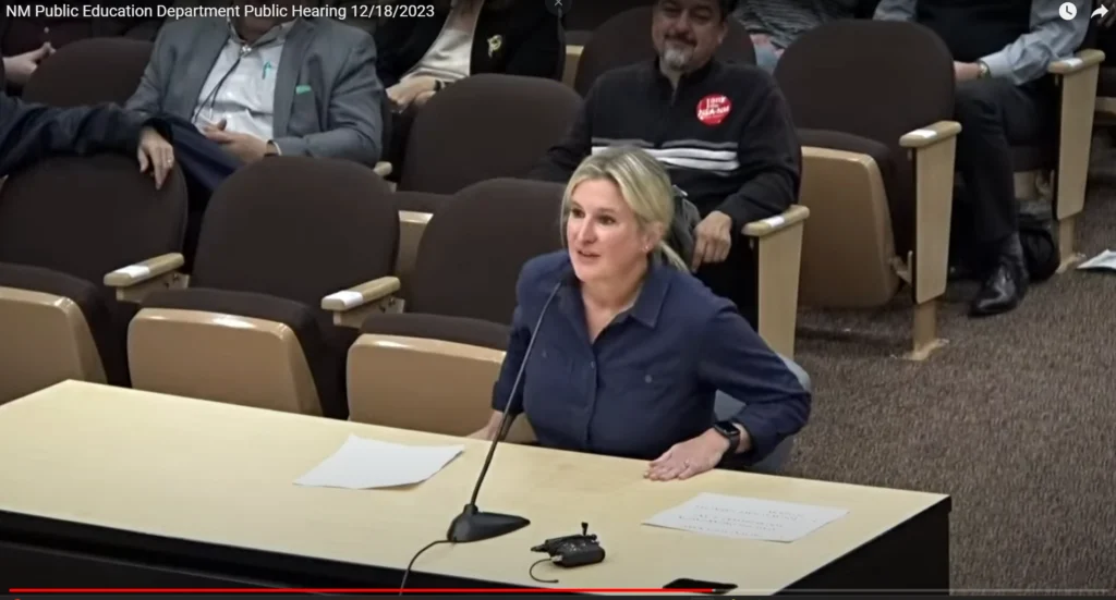 Say “NO” to 5 day school weeks. Members of the NM PED listen to public comments in Santa Fe on…